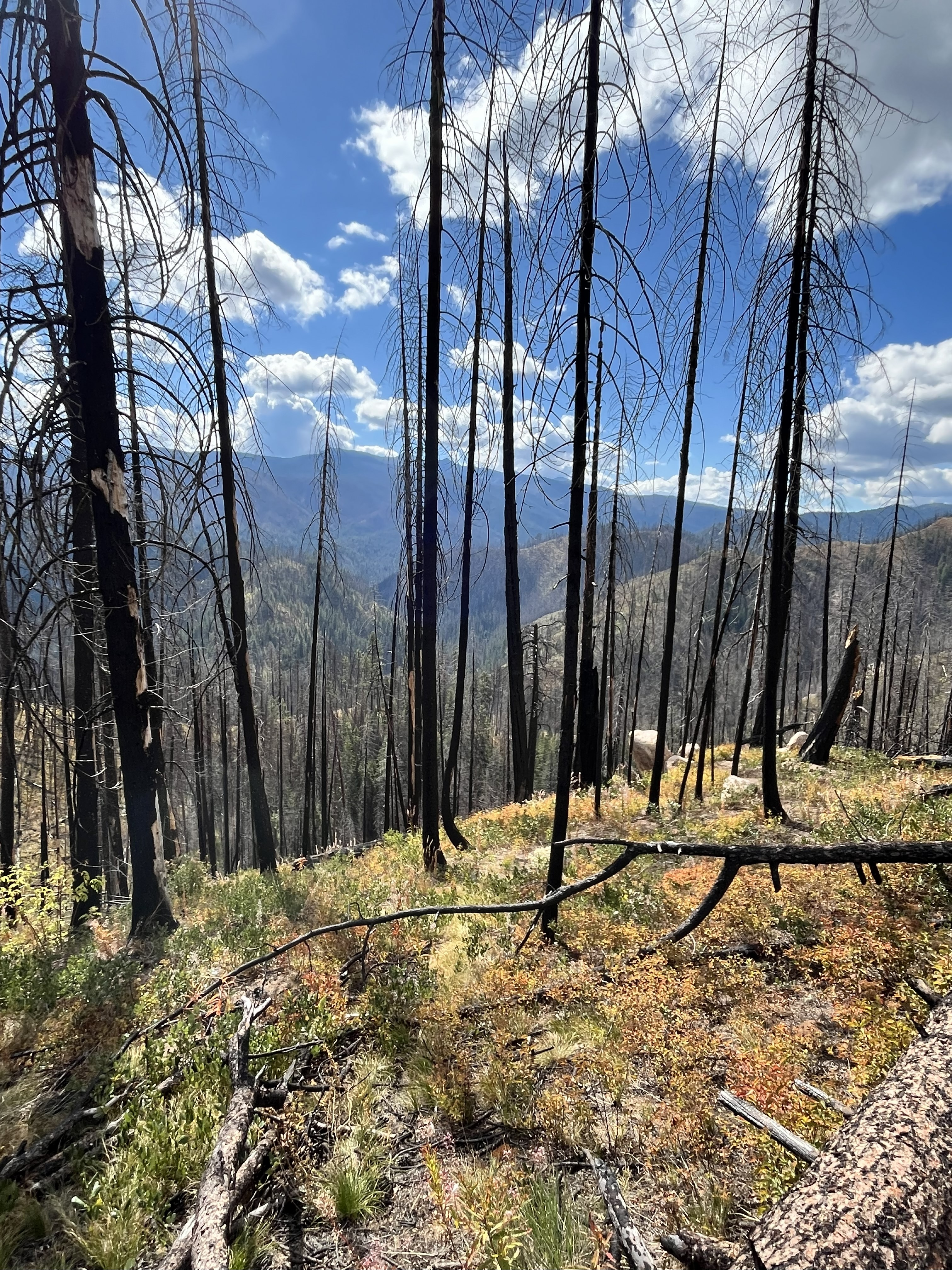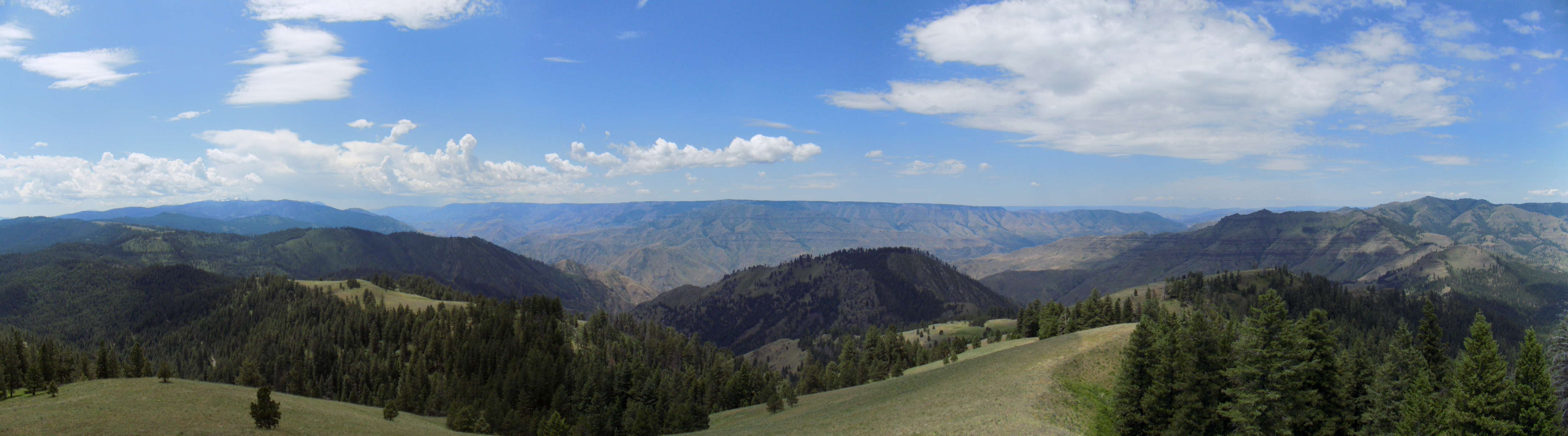 Its an easy ride along forest roads with views of Hells Canyon, the Salmon River Canyon and many mountain ranges. The last mile borders on intermediate but can be walked easily.
